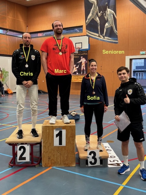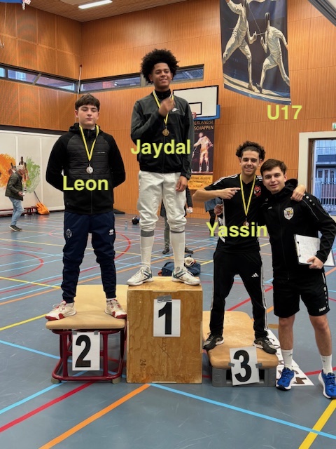 Tijdens het goed georganiseerd Nederlandse Kampioenschap voor de jeugd in Rosmalen deden er 5 schermers van onze club mee t.w. Jaydel, Yassin, Artem, Lucas en Ludovico. Jaydel kwam in de halve finale de latere winnaar Mees Anker tegen. Na een spannende strijd werd het 13-13 en moest er een minuut verlengd worden. Helaas kwam de aanval van Jaydel niet aan en kon Mees het winnende punt maken.
